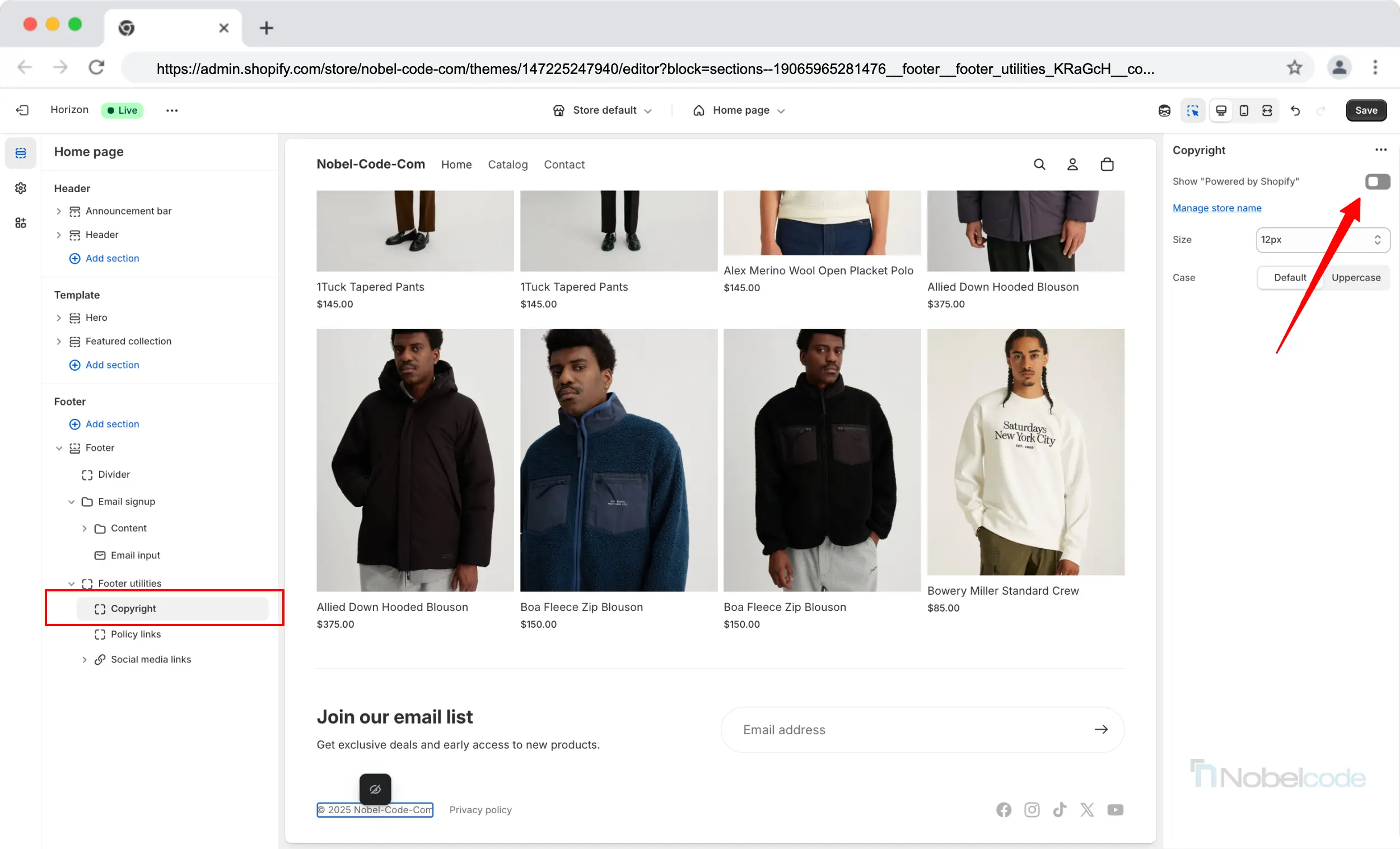 Step 6: Remove the ‘Powered by Shopify’ Code