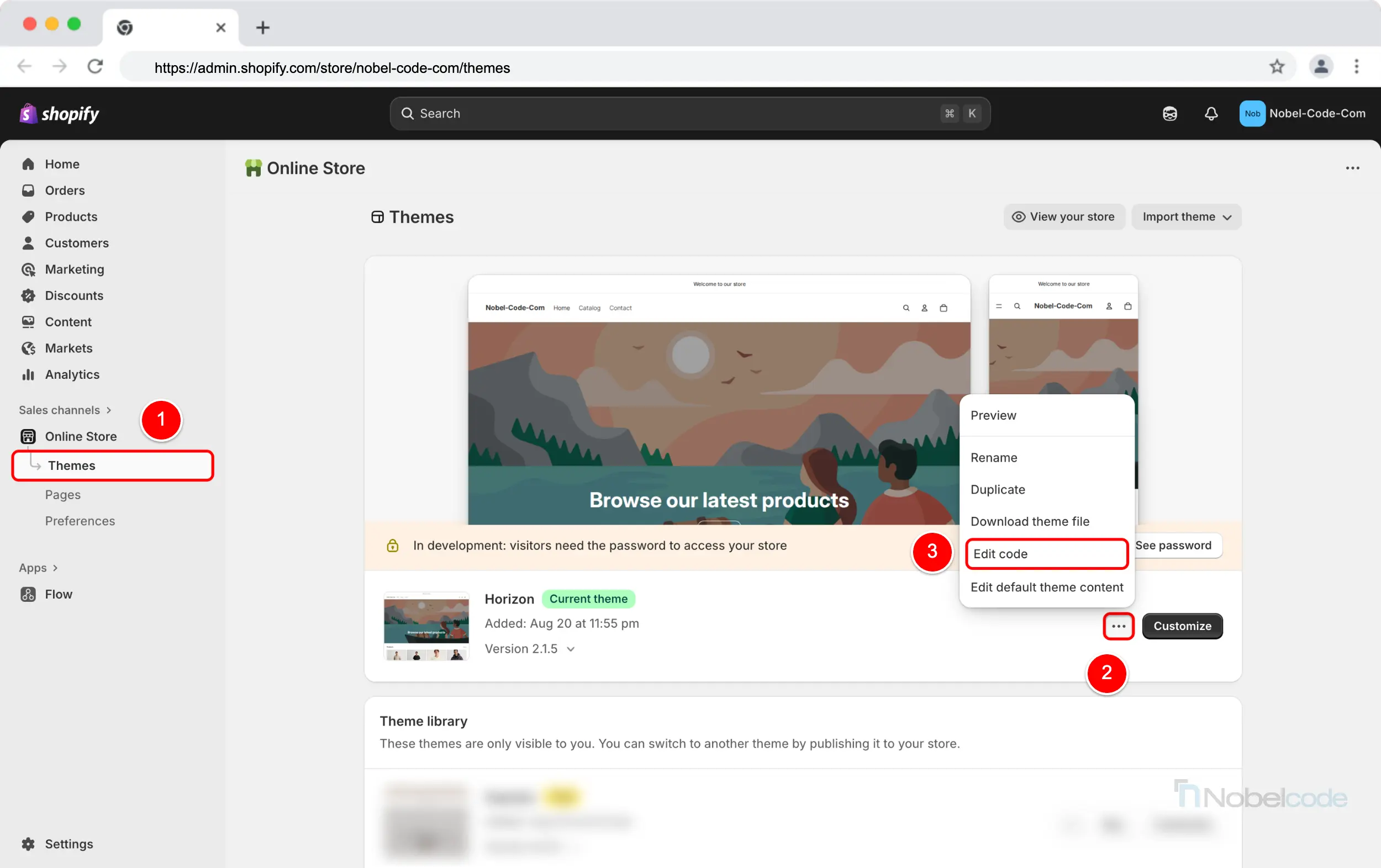 In your Shopify admin, go to Online Store → Themes.