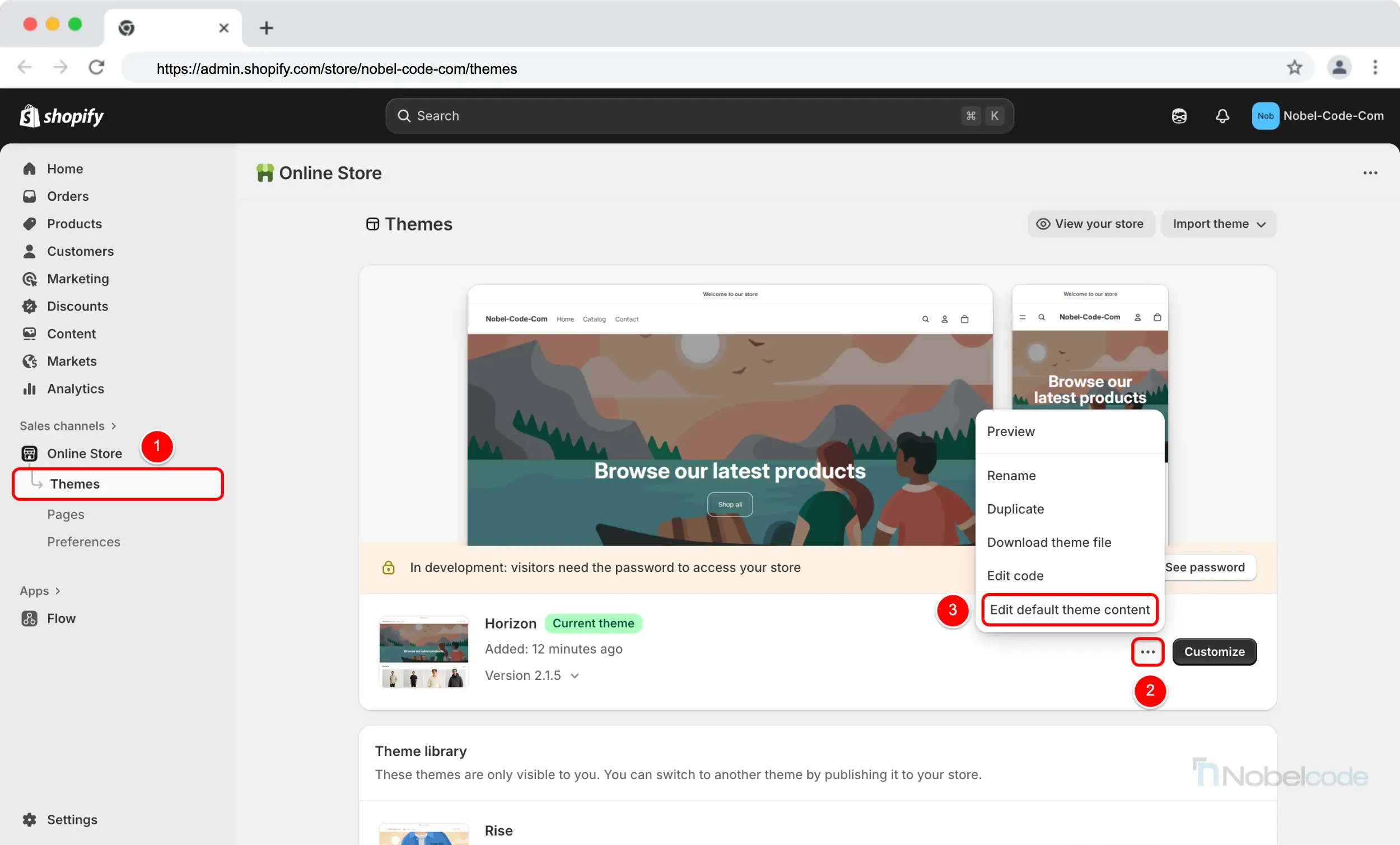 Step 3: Select “Edit default theme content”